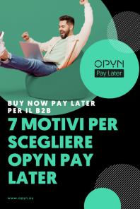 Rispondere alle esigenze di questo target è proprio l’obiettivo di Opyn Pay Later, il primo servizio in Italia di “buy now pay later” rivolto specificamente al mondo Business-to-business. Opyn offre un servizio di dilazione di pagamento flessibile e modulare per qualsiasi tipologia di azienda. Ciò vuol dire che, utilizzando la piattaforma, i fornitori B2B potranno scegliere ad ogni singola transazione, sia online che in negozio, diverse opzioni di vendita da offrire ai propri clienti in maniera personalizzata.